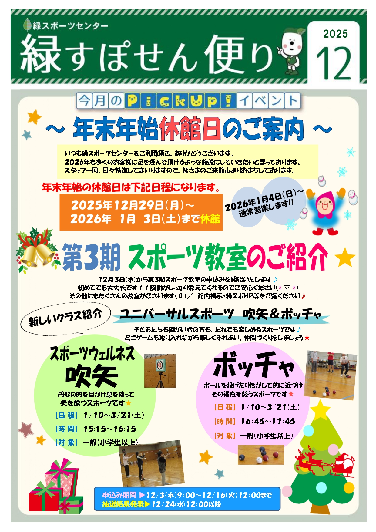2025年11月26日令和7年12月号 緑すぽせん便り・行事予定